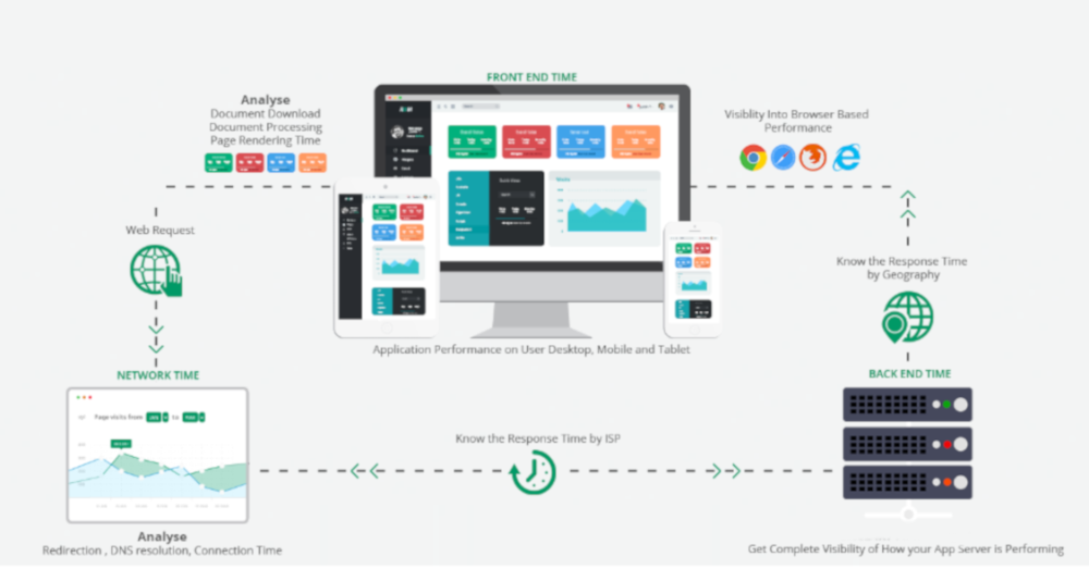 RUM provides you with data on response time application performance irrespective of whether the webapp is being accessed from a desktop, tablet or mobile device.